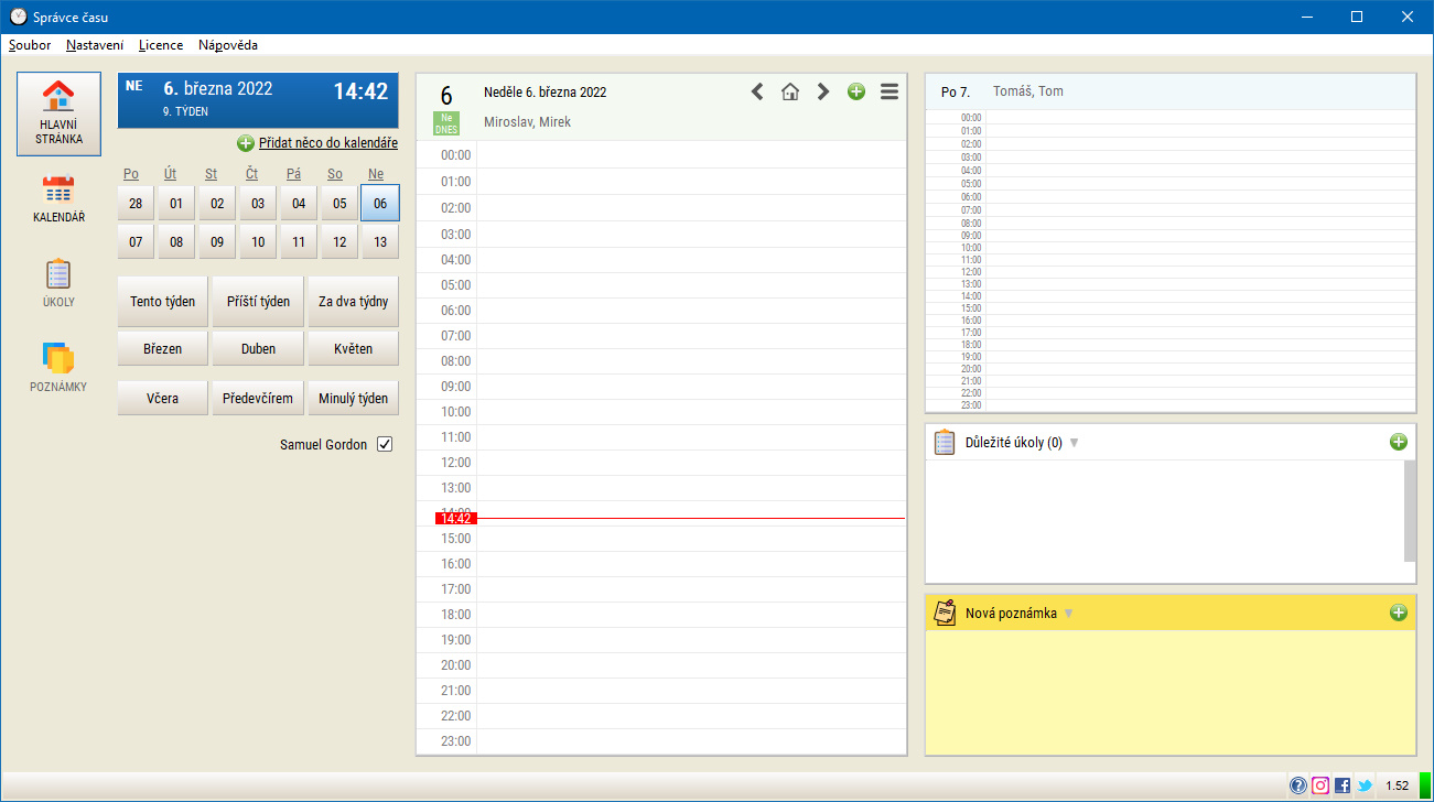 - Nová velká verze Správce času 1.56 přináší sekci Stránky a kalendáře [6. září 2022, 19:47]